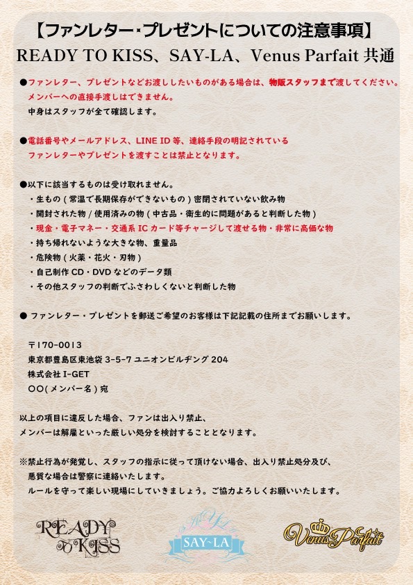 ファンレター・プレゼントについての注意事項